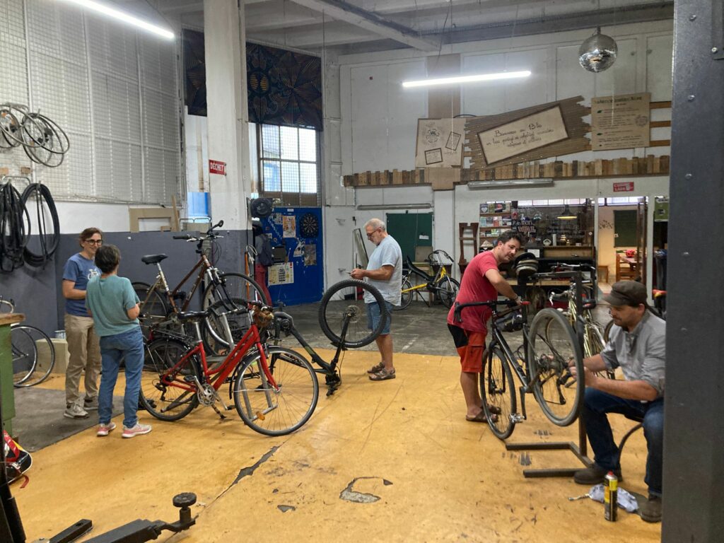 Mais bon si t’as un super vélo qu’à pas besoin d’être réparé, tu peux quand même venir ! On se lance, on se construit et on cherche des passionné.es. Alors si tu as envie de démonter des vélos, d’animer un atelier de rayonnage de roue ou de participer à la fabrication d’une table en jantes à boyaux, viens nous rejoindre.